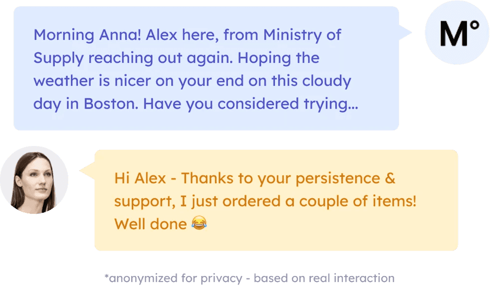 These churned customers were incredibly valued individuals that had been lost by Ministry of Supply and they wanted to show them they cared and wanted them back.