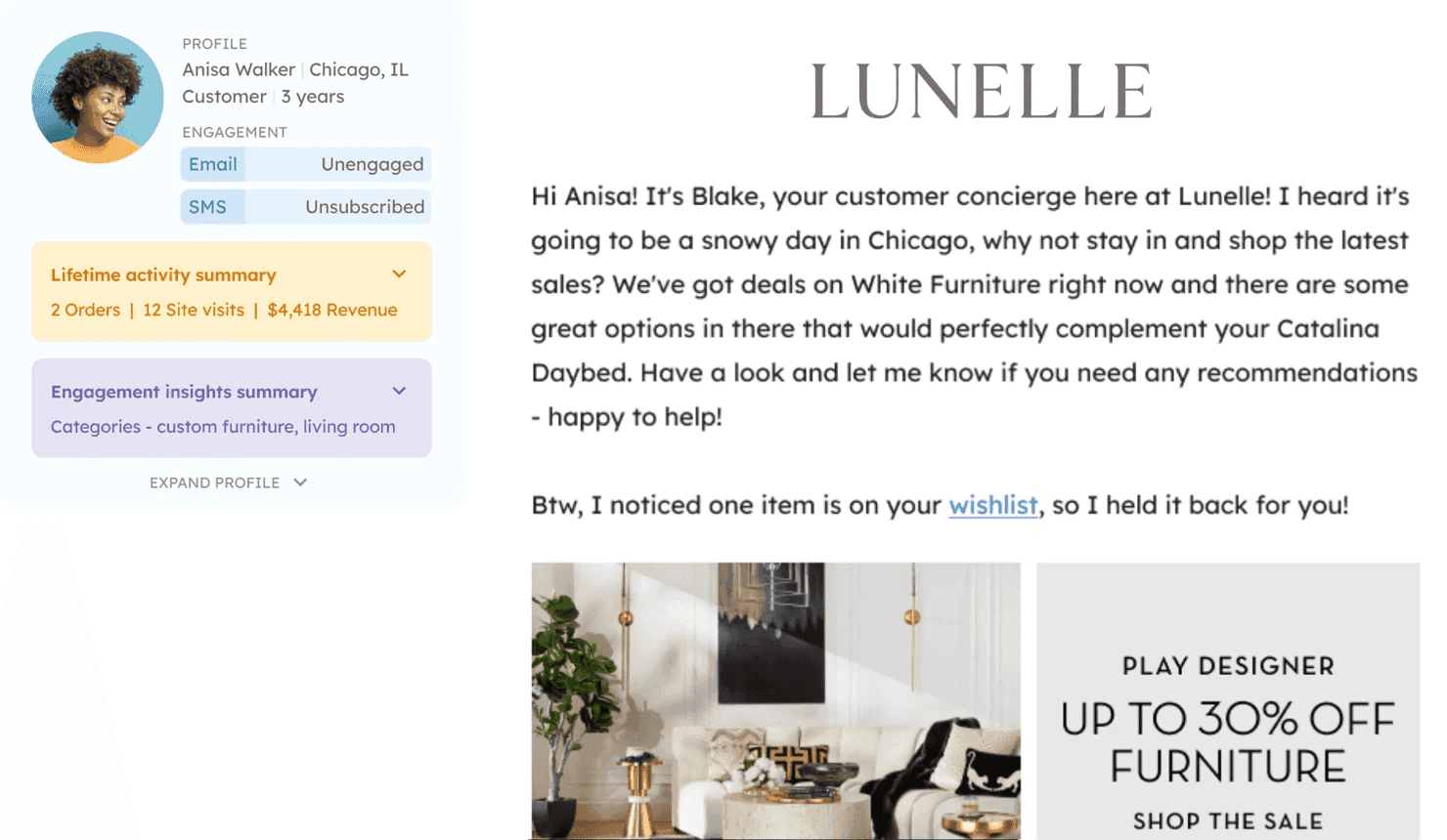 Scalable Individual Outreach: Utilize this data to create detailed segments and reach out to customers on a seemingly individual level at scale. Mention specifics like their location, previous purchases, and invite feedback to enhance relevance.
